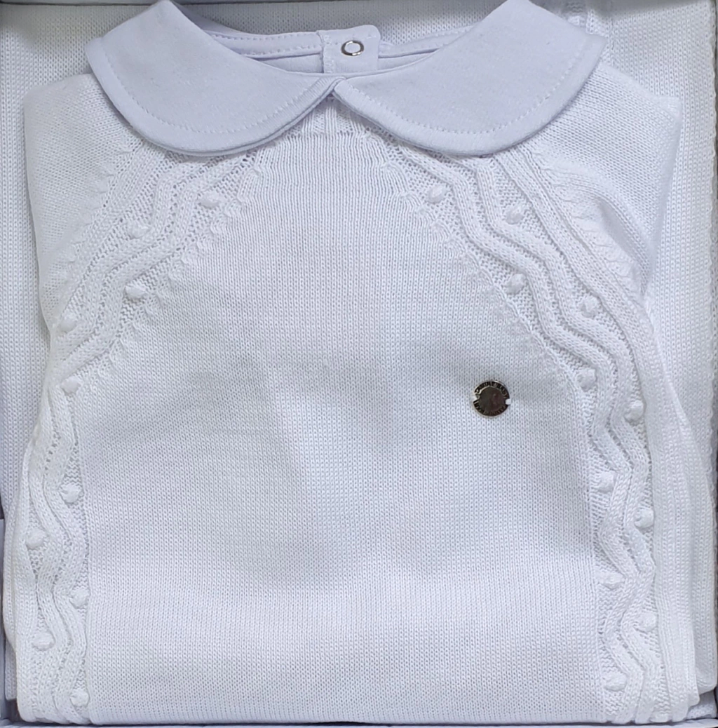 Kit Saída de Maternidade em Tricot Bolinhas Branco - Tamanho P