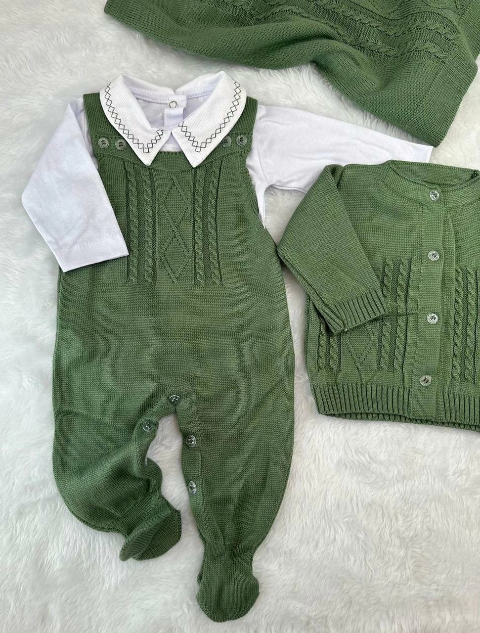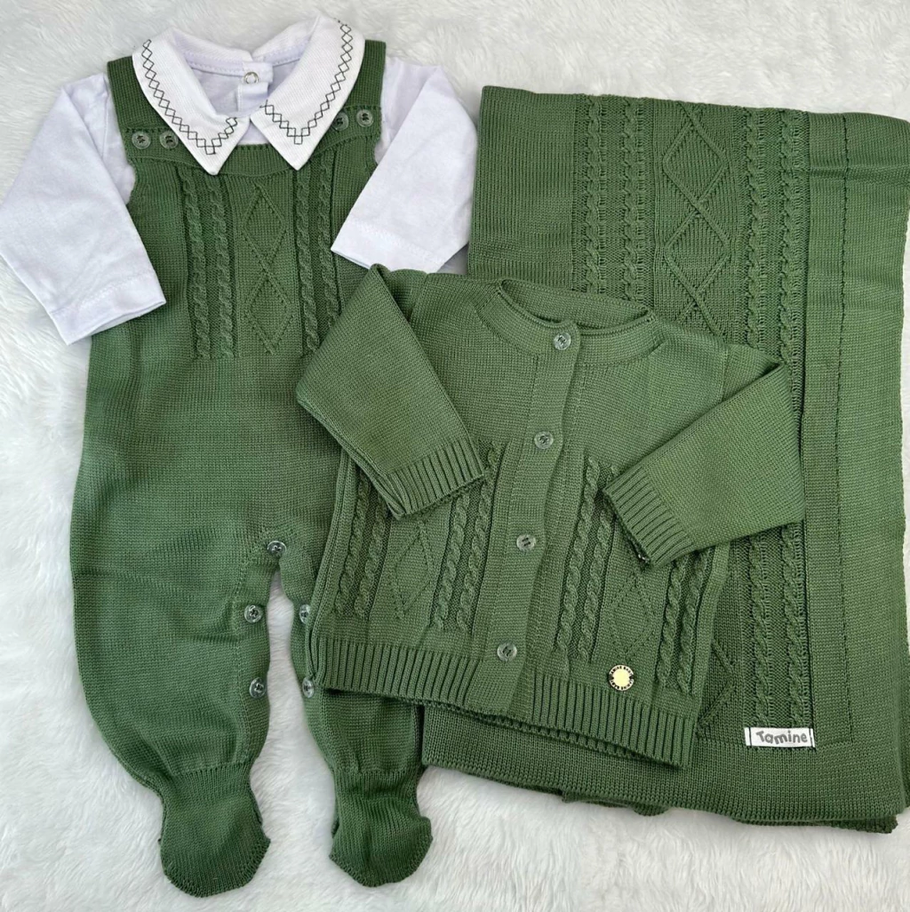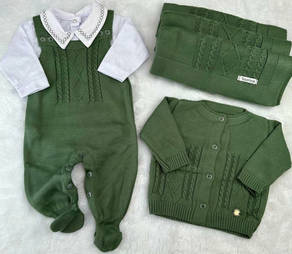 Kit Saída de Maternidade em Tricot Davi Verde Pistache - Tamanho P