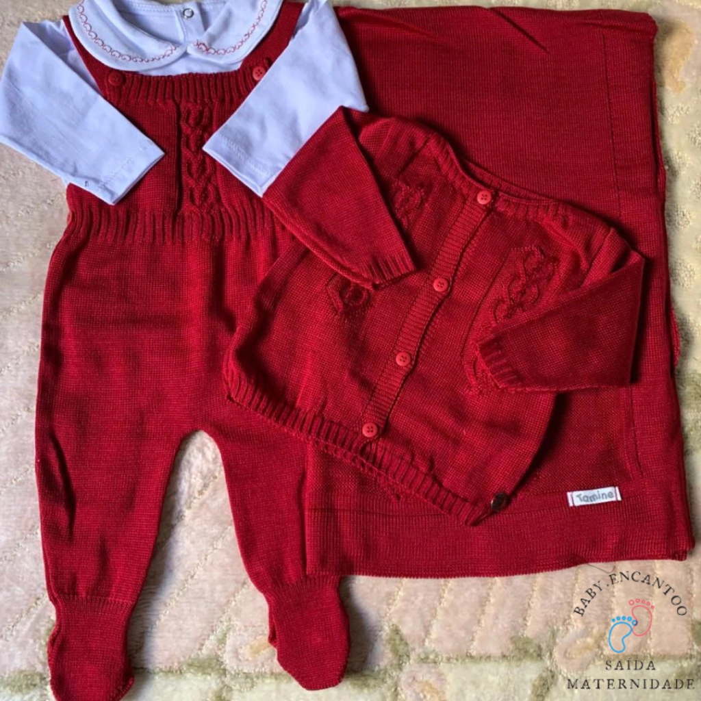 Kit Saída de Maternidade Helena em Tricot Vermelho - Tamanho P