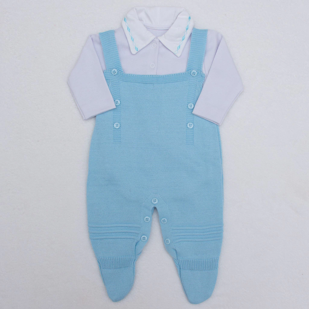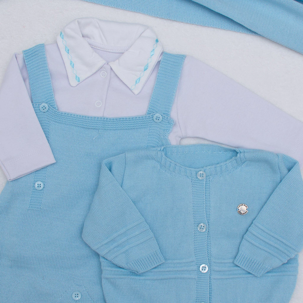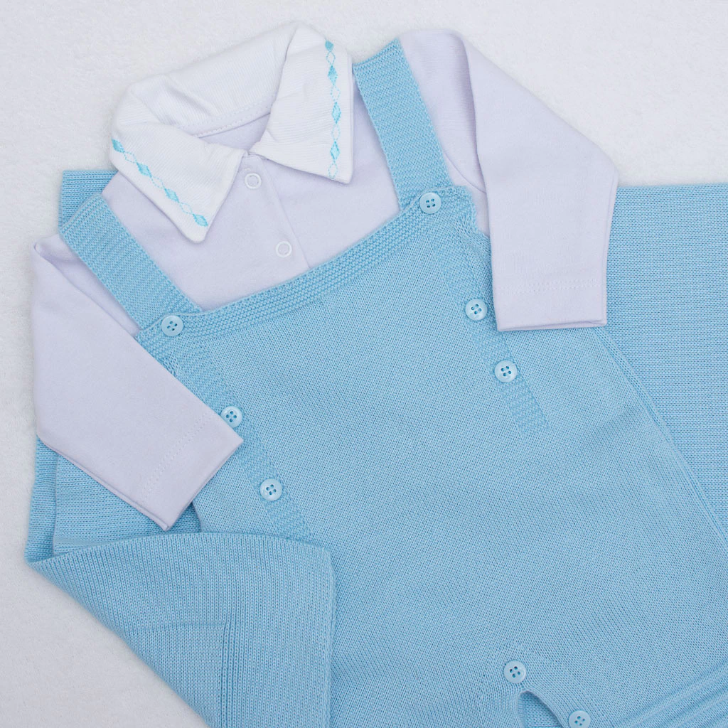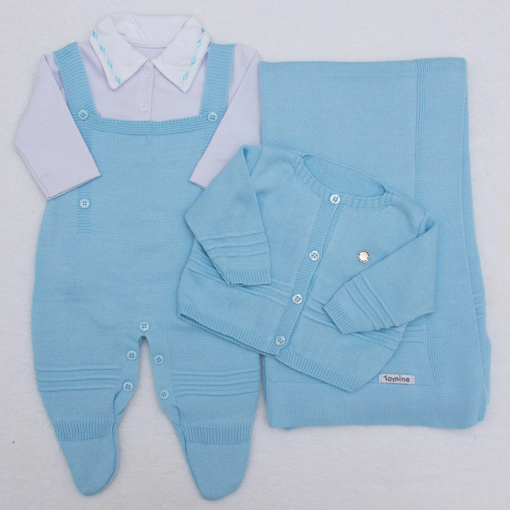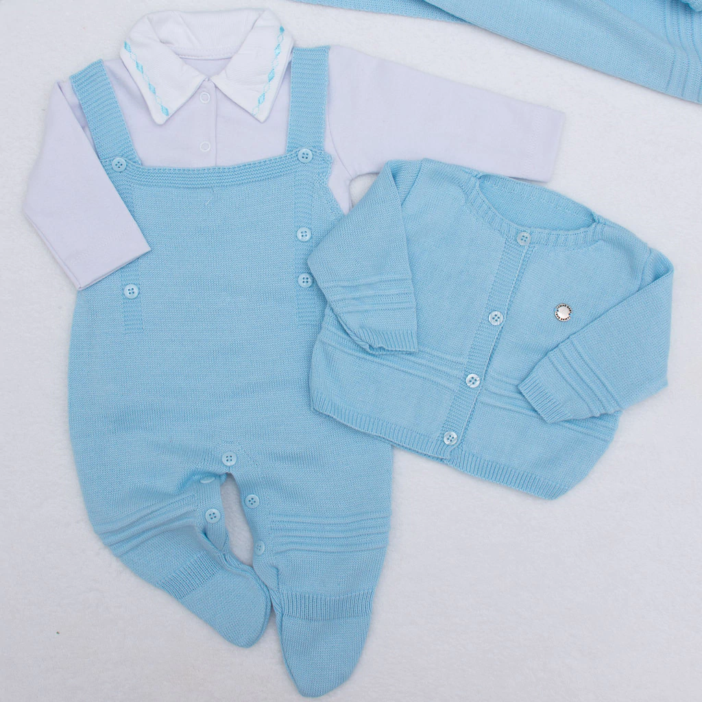 Kit Saída de Maternidade em Tricot Azul Bebê - Tamanho P