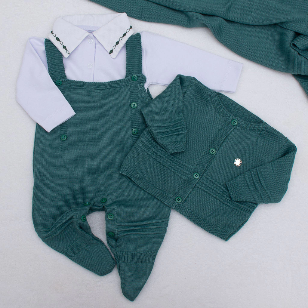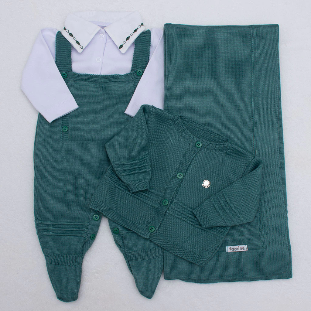 Kit Saída de Maternidade em Tricot Verde Esmeralda - Tamanho P