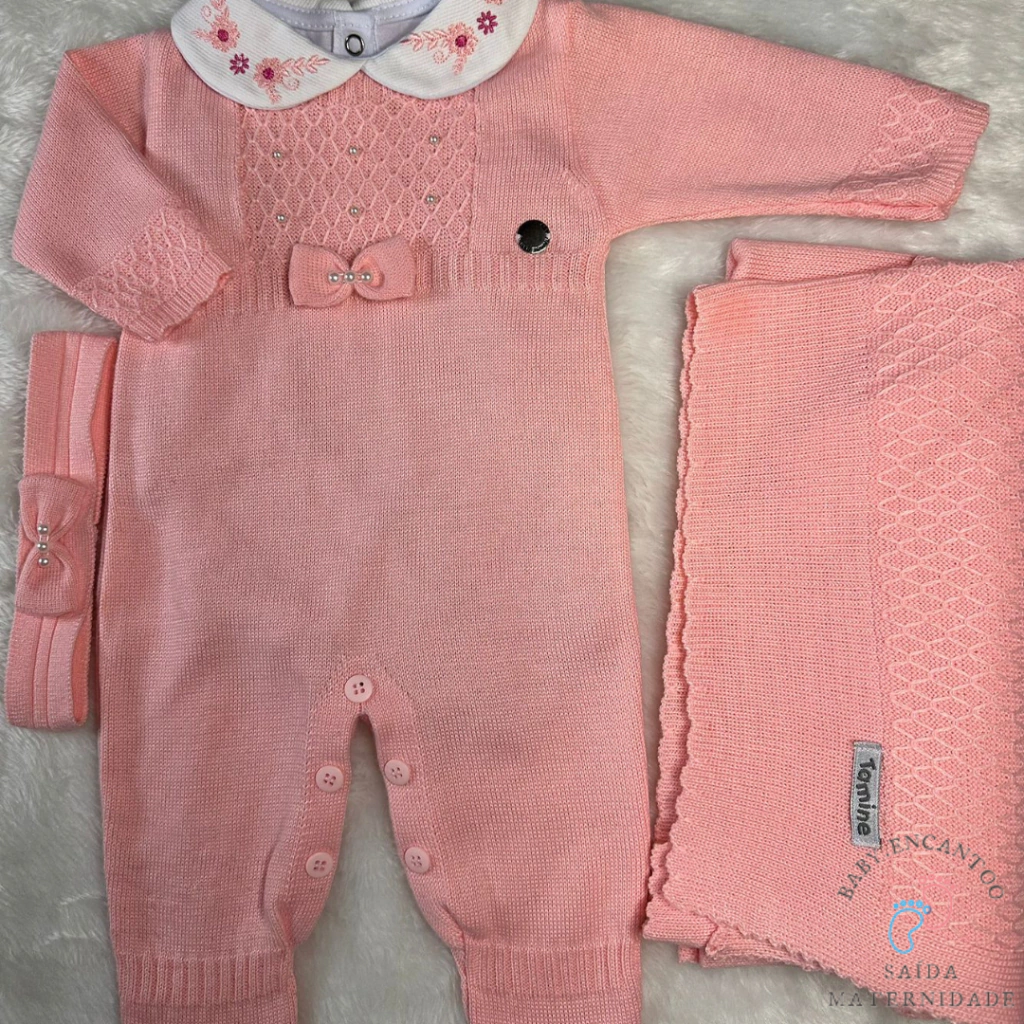 Kit Saída de Maternidade Maitê em Tricot Rosa - Tamanho P