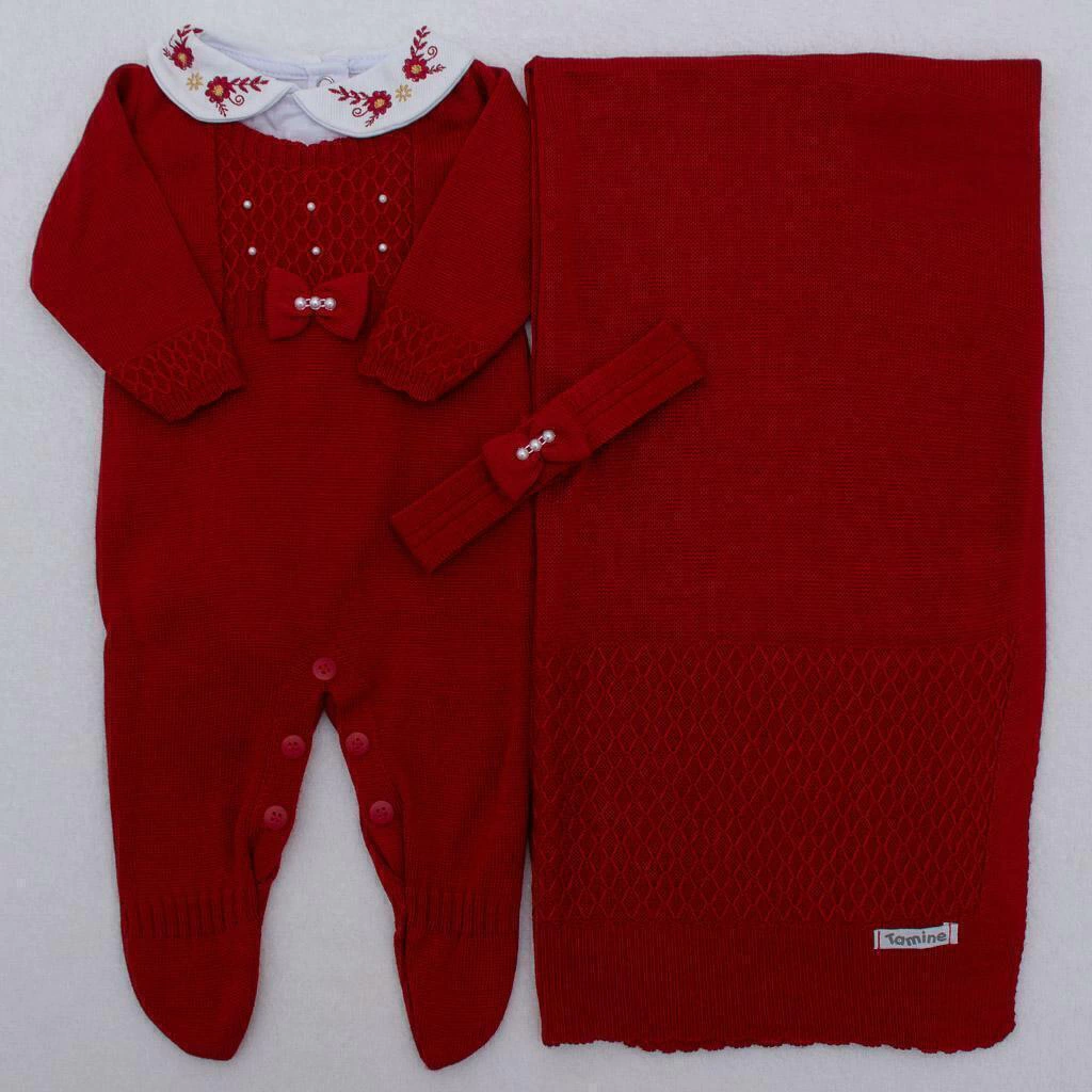 Kit Saída de Maternidade Maitê em Tricot Vermelho - Tamanho P