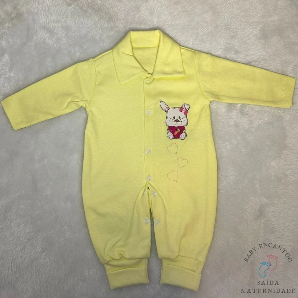 Receba seu novo tesouro com o Macacão Coelhinha Amarelo, projetado para dar as boas-vindas ao seu recém-nascido com estilo e conforto incomparáveis.